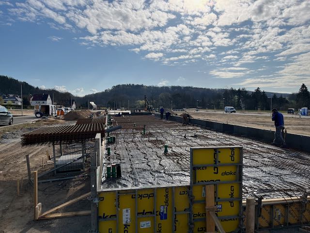 In Pirna-Mockethal entsteht ein neuer Wohnbaustandort. Im Wohngebiet „Am Speicher“ werden unter anderem zwei Reihen mit je sieben Häusern errichtet. Nachdem die wärmegedämmten Bodenplatten fertiggestellt sind, werden die Häuser aus Betonelementen montiert. Dies bietet einen enormen Vorteil in Sachen Baufortschritt und Kosten. Wir bedanken uns für diesen Bauauftrag bei der schinkel.projects GmbH aus Dresden!