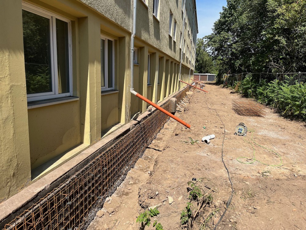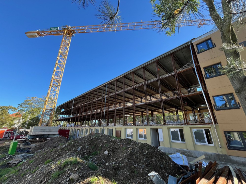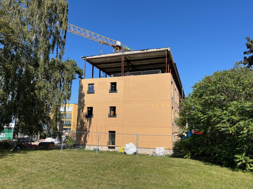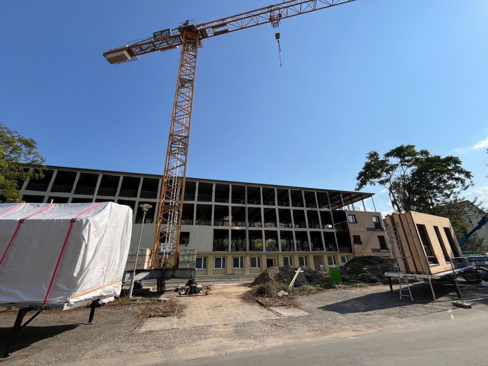 In Pirna sind wir mit den Rohbauarbeiten zur Sanierung und zum Umbau eines ausgedienten Bürokomplexes beauftragt. Hier entstehen moderne Wohnungen. Besonders daran ist, dass die Wohnungen über einen neu zu errichtenden, außen liegenden Laubengang mit drei neuen, ebenfalls außen liegenden Treppenhäusern erschlossen werden.